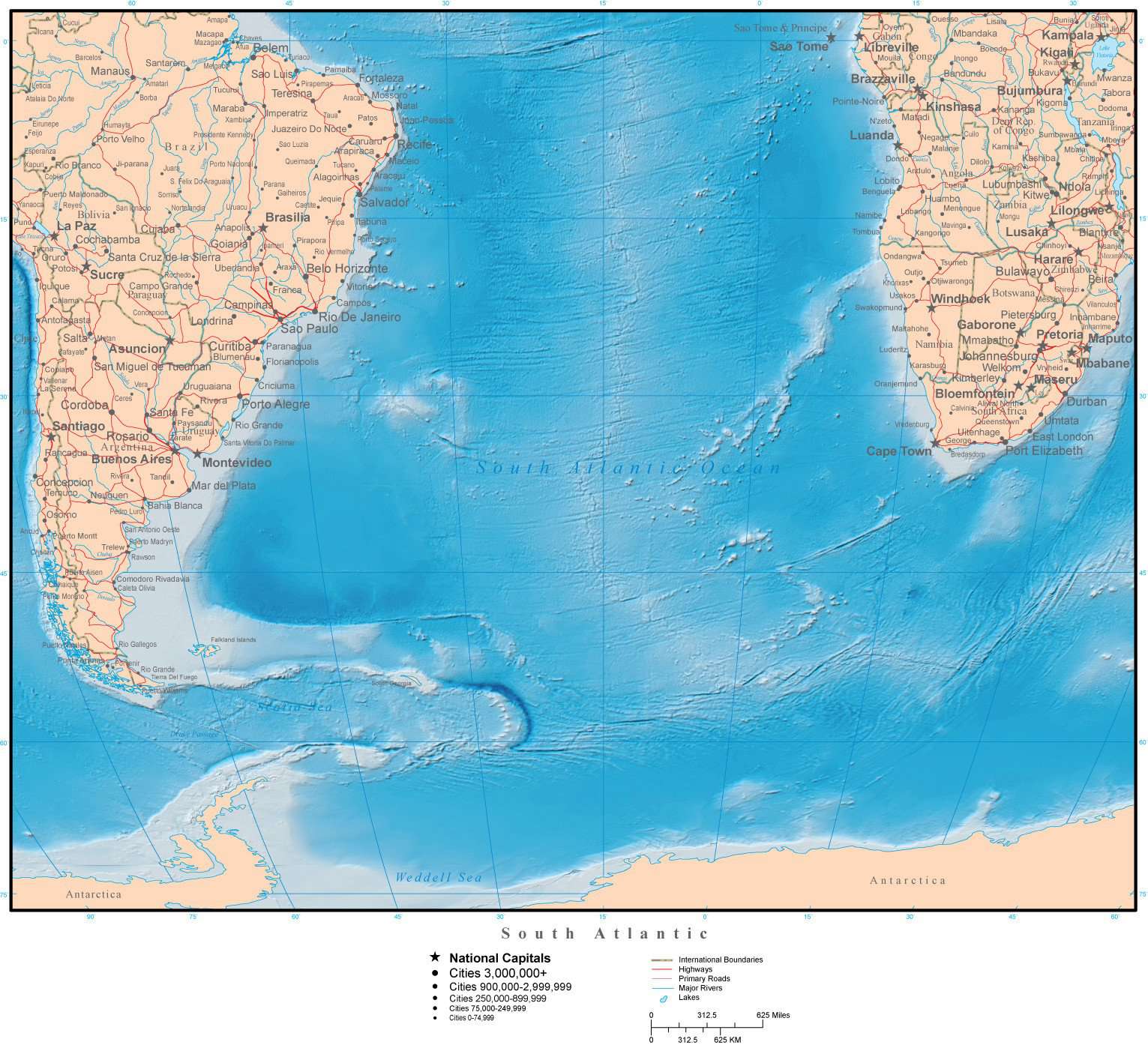 South Atlantic Ocean Terrain map in Adobe Illustrator vector